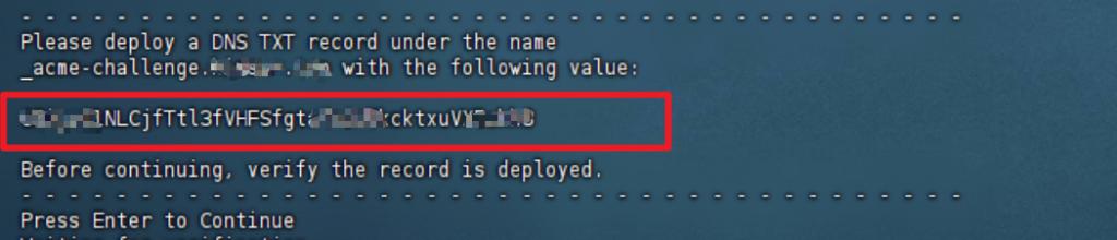 添加一个TXT的解析,以_acme-challenge开头,例如域名为explame.com,那么就是_acme-challenge.explame.com,TXT内容为以下一串字符