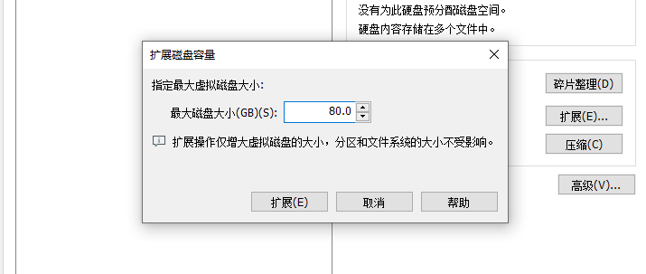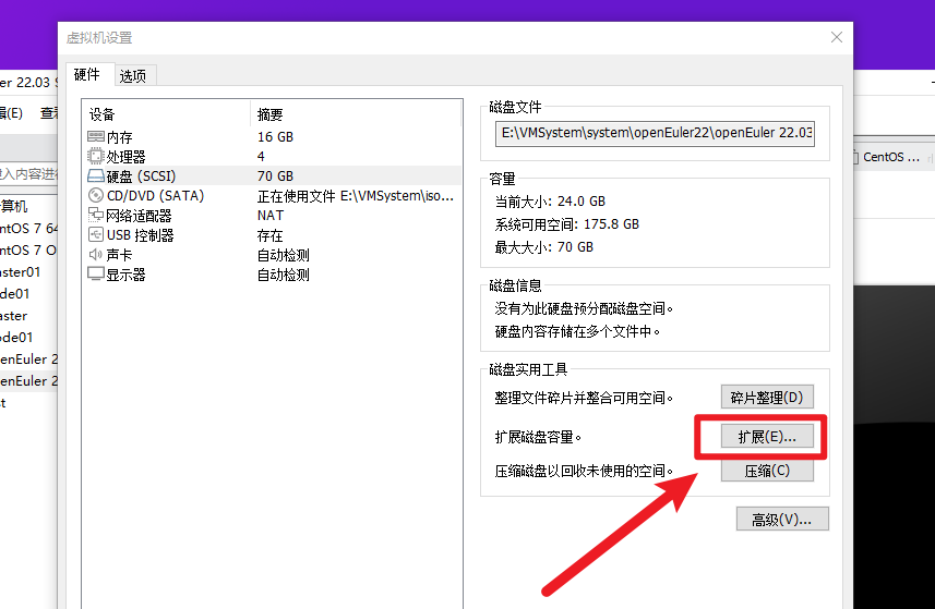 注意:如果有该虚拟机有快照的情况下是无法扩展磁盘的