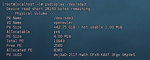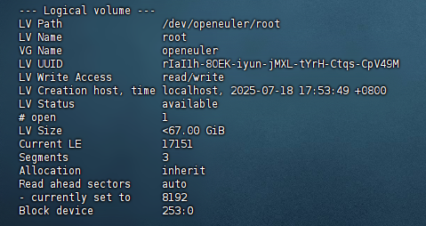 可以得知该逻辑卷的路径是/dev/openeuler/root