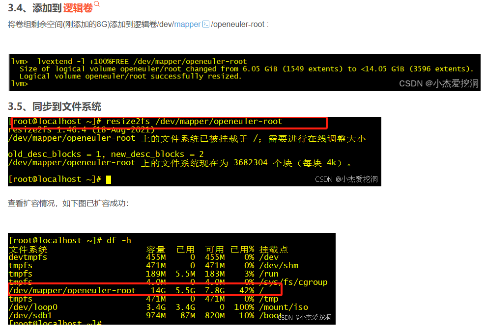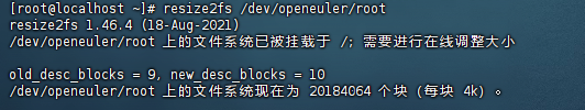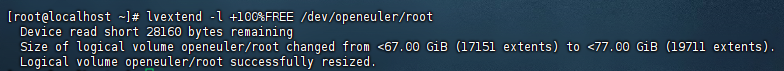 sudo lvextend -l +100%FREE /dev/openeuler/root