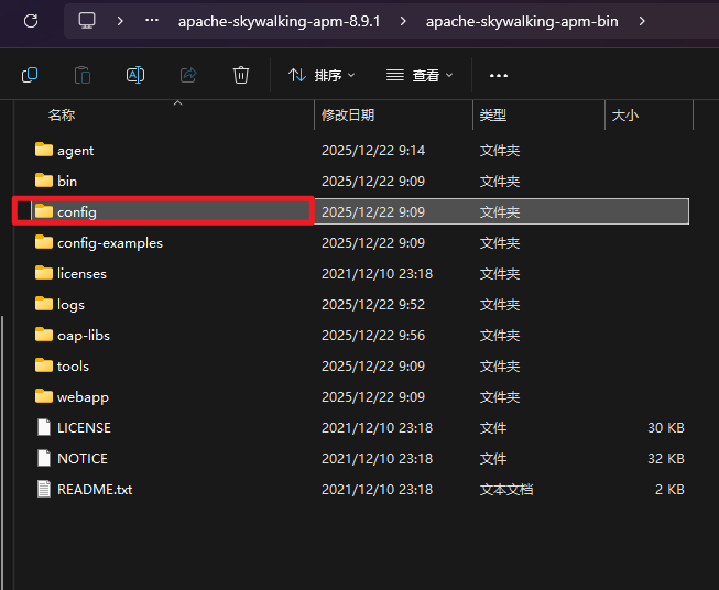 1、找到解压的apm包目录,对config目录中的application.yml修改