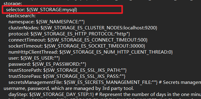 2、这里我使用的是mysql的存储方式,找到storage,将selector改成mysql