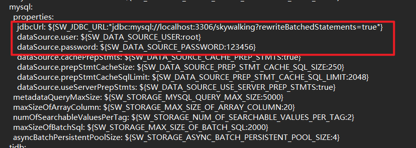 再往下找到mysql,填写好数据库、用户和密码即可