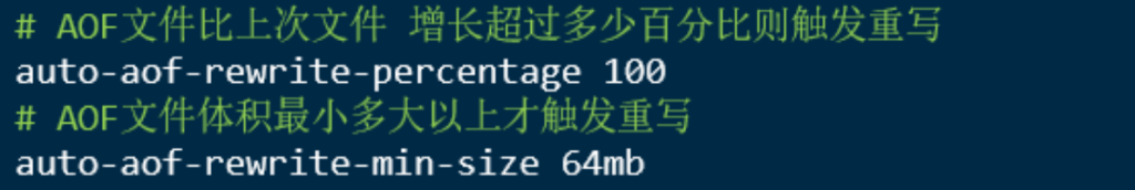 Redis也会在触发阈值时自动去重写AOF文件。阈值也可以在redis.conf中配置: