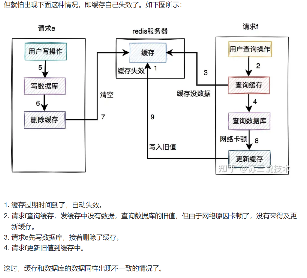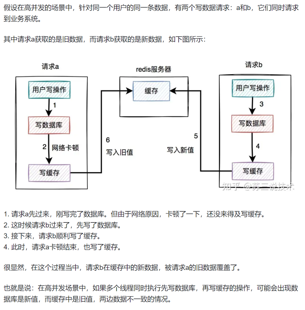 据,直到缓存过期。相比之下,“先更新数据库,再删除缓存”可以在某种程度上避免这种情